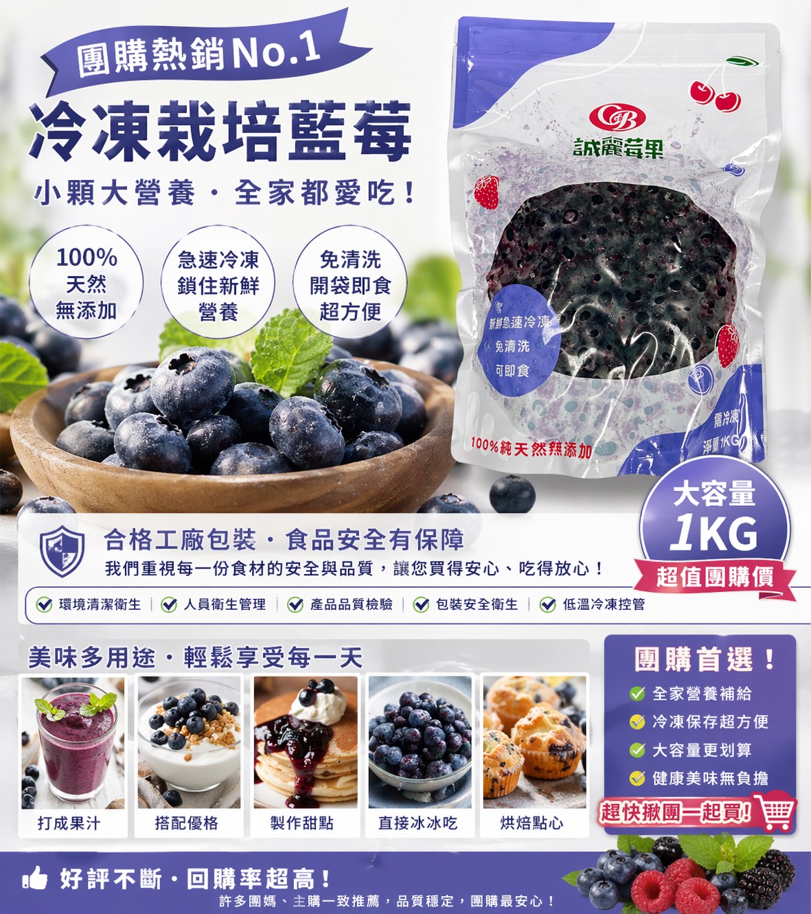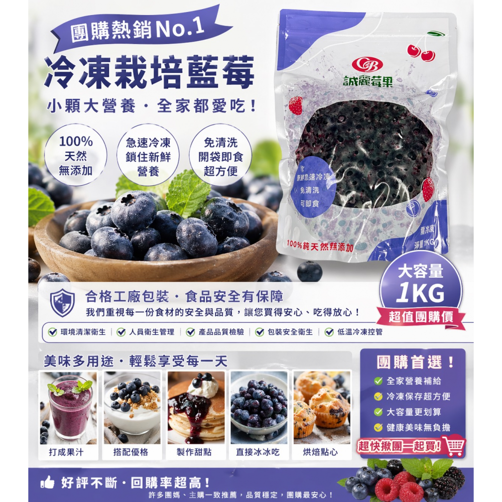 尖端冷凍技術:採用先進的急速冷凍技術,迅速將藍莓冷凍,鎖住其新鮮口感和營養成分。